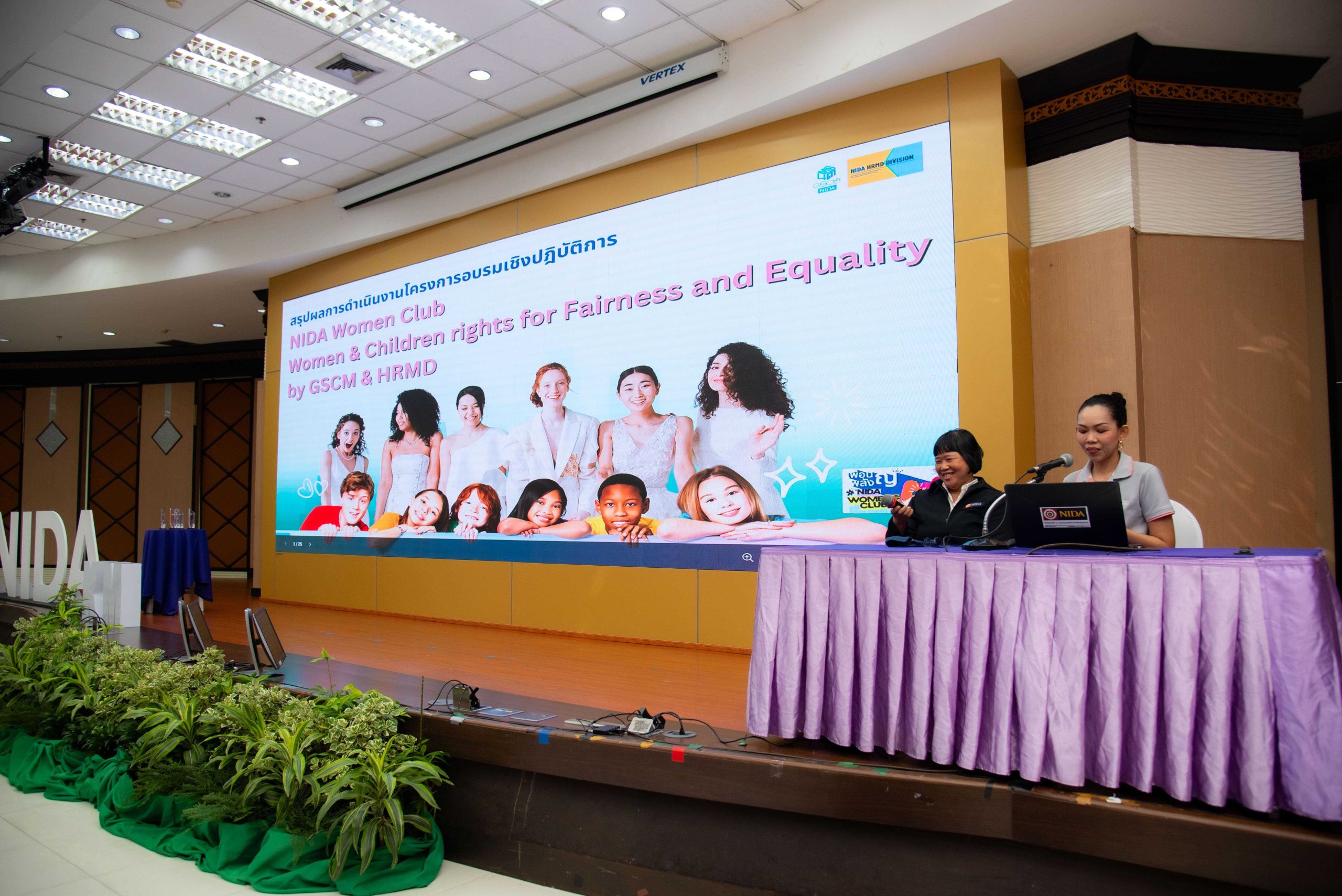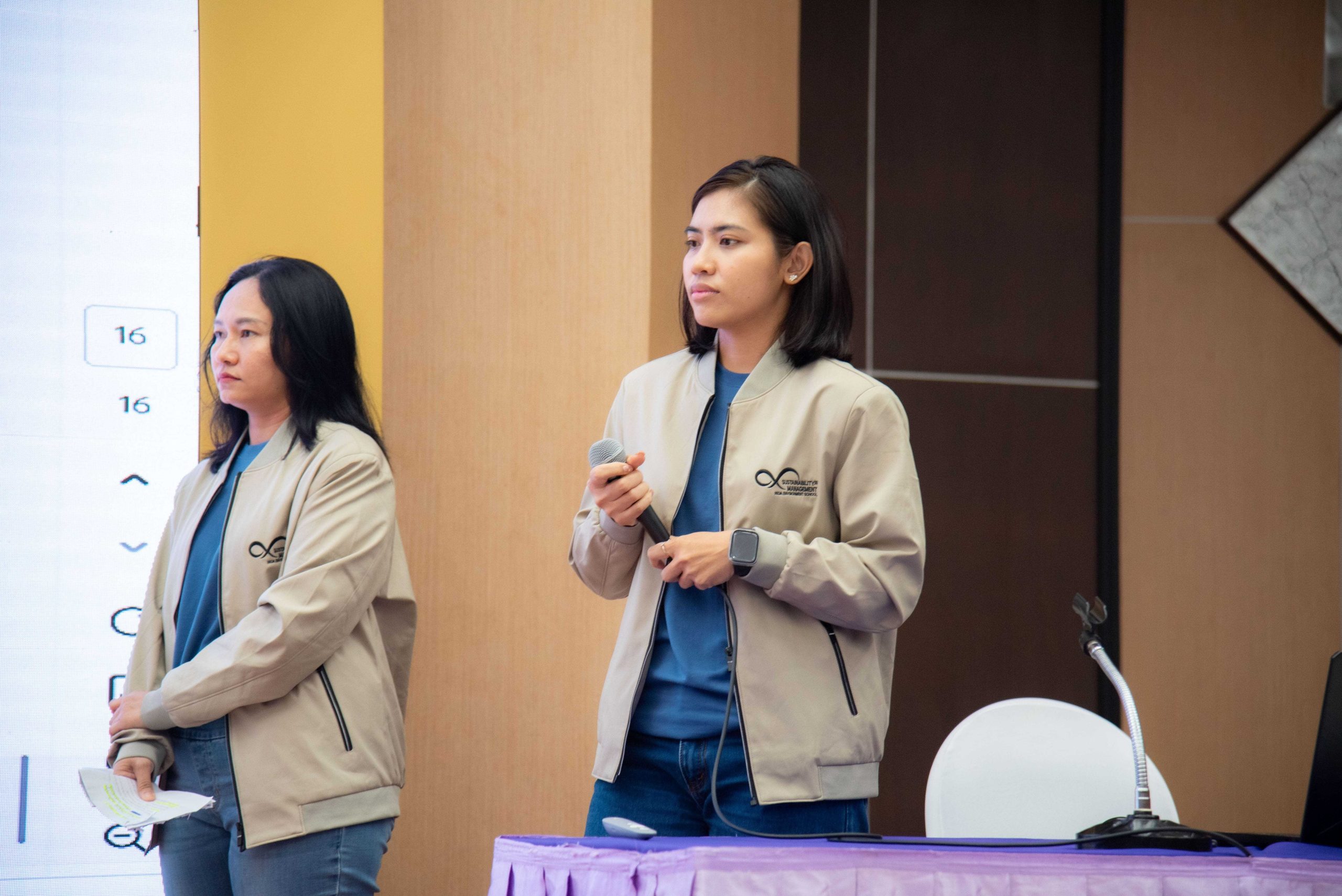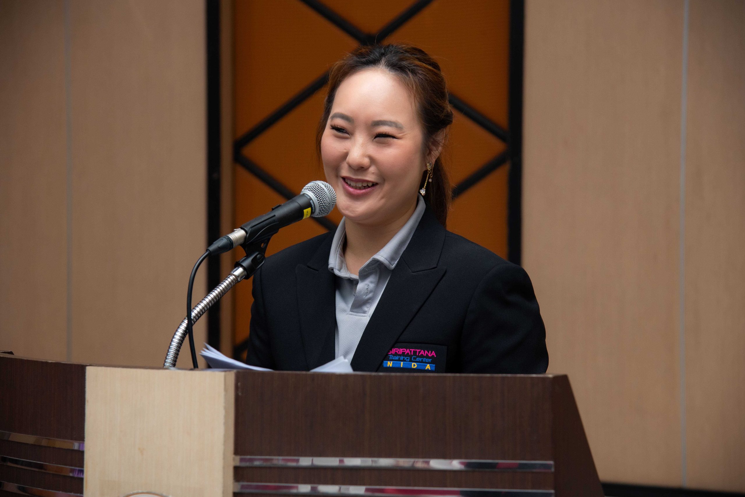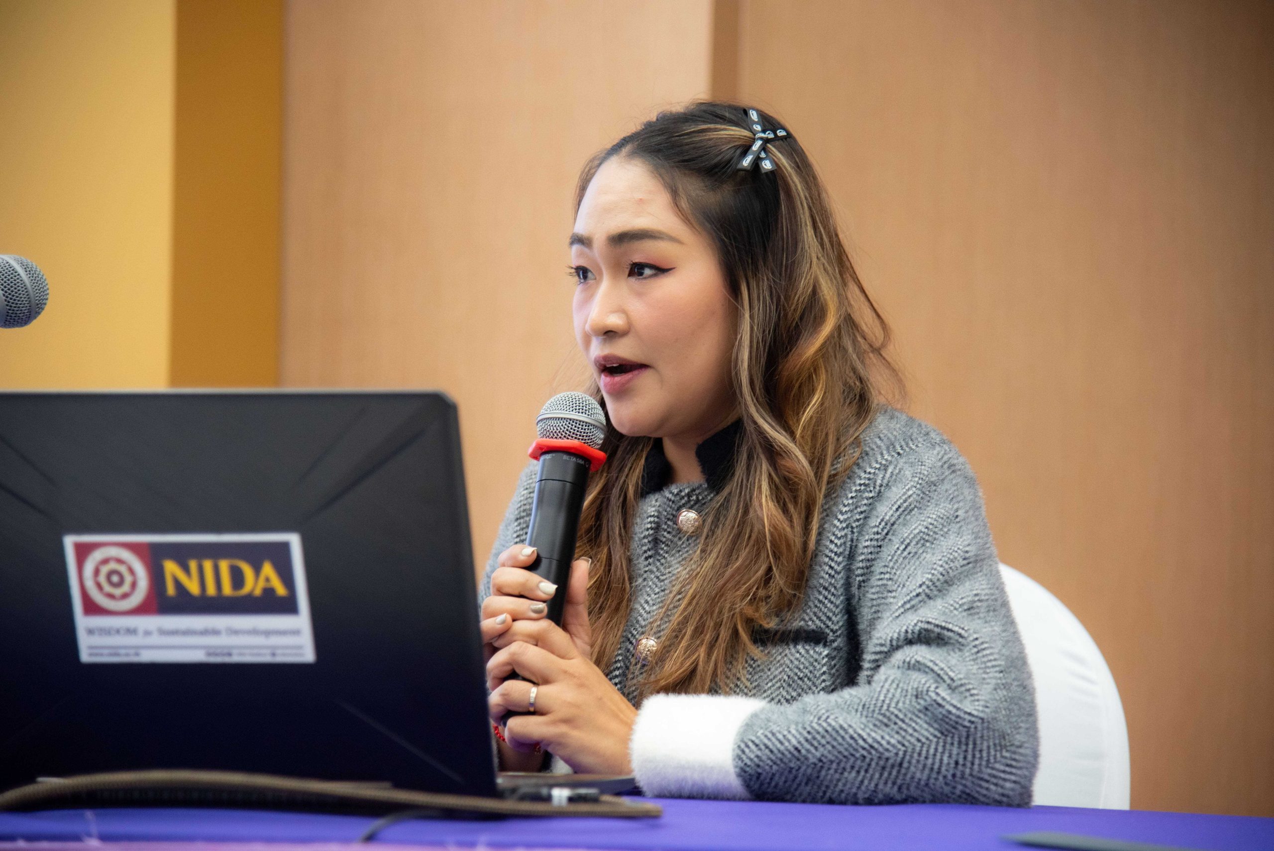 ในช่วงถัดไปเป็นการประกวดโครงการ “การพัฒนากระบวนการปฏิบัติงานเพื่อยกระดับการพัฒนาที่ยั่งยืน” ของหน่วยงานต่าง ๆ ภายในสถาบัน โดยได้รับเกียรติจาก คุณสุกิจ อุทินทุ คอลัมนิสต์กิติมศักดิ์ Sustainable Daily เดลินิวส์ คุณวรางคณา ภัทรเสน ผู้อำนวยการฝ่ายพัฒนาความรู้ด้านความยั่งยืนตลาดหลักทรัพย์แห่งประเทศไทย คุณกรณิศ ธนสุนทรกิจ รองกรรมการผู้จัดการ สายงานทรัพยากรบุคคล บริษัท ซีพี ออลล์ จำกัด (มหาชน) เป็นคณะกรรมการตัดสินผลงาน พร้อมให้ข้อเสนอแนะ คำแนะนำต่าง ๆ แก่ผู้เข้าร่วมการประกวดผลงาน สำหรับการประกวดโครงการการพัฒนากระบวนการปฏิบัติงานเพื่อยกระดับการพัฒนาที่ยั่งยืน ประจำปี 2568 มีหน่วยงานภายในนิด้าที่ได้รับรางวัล ดังนี้