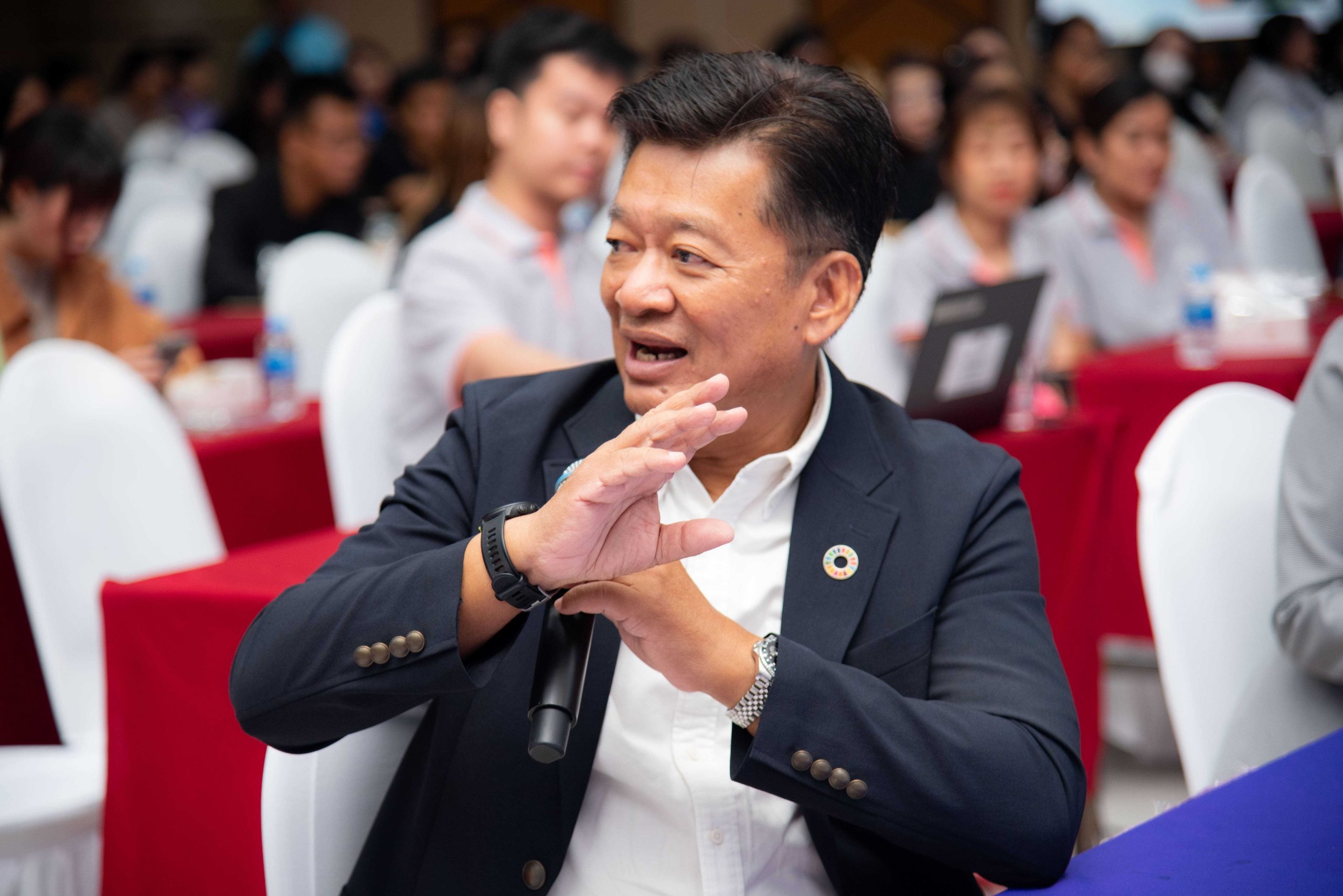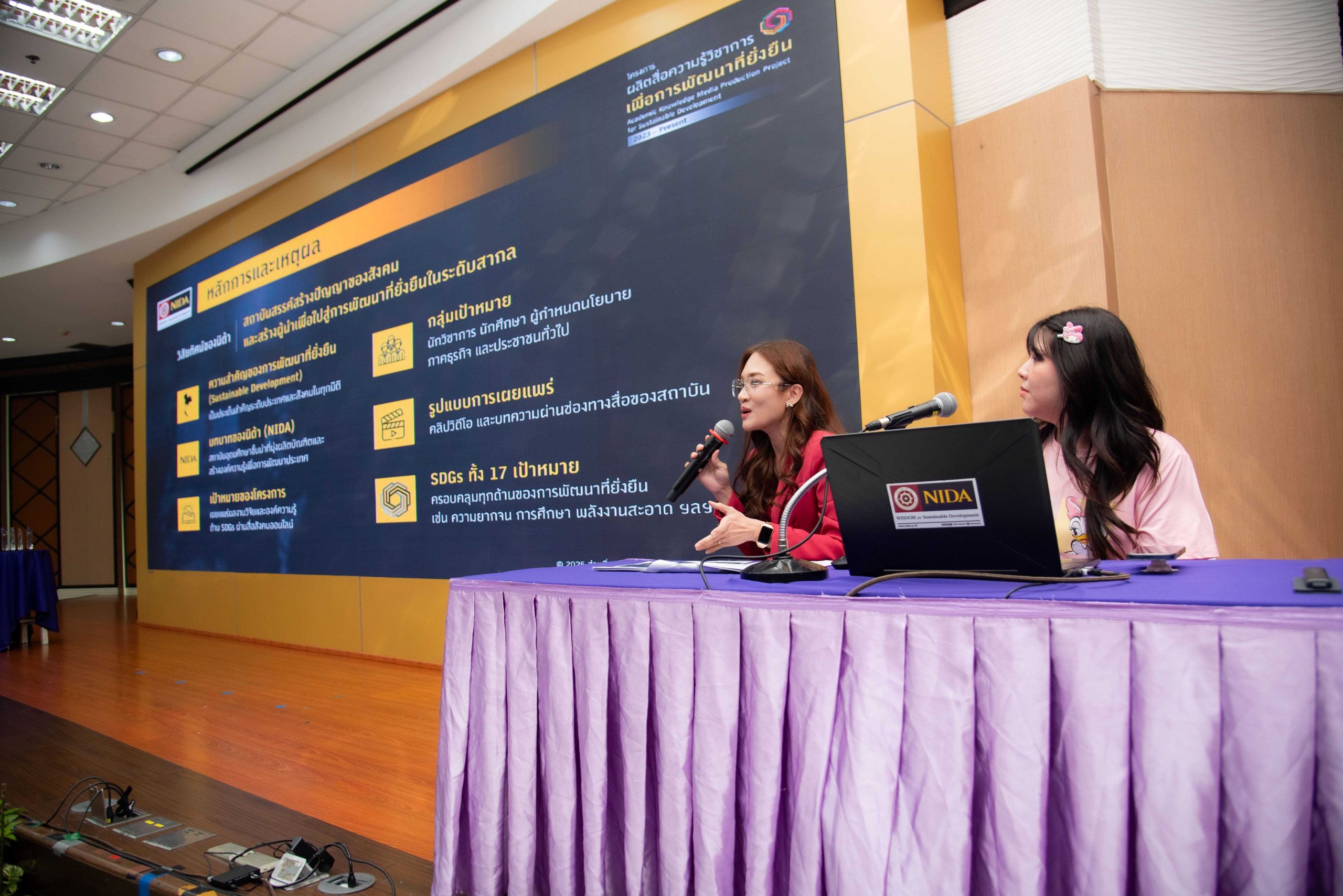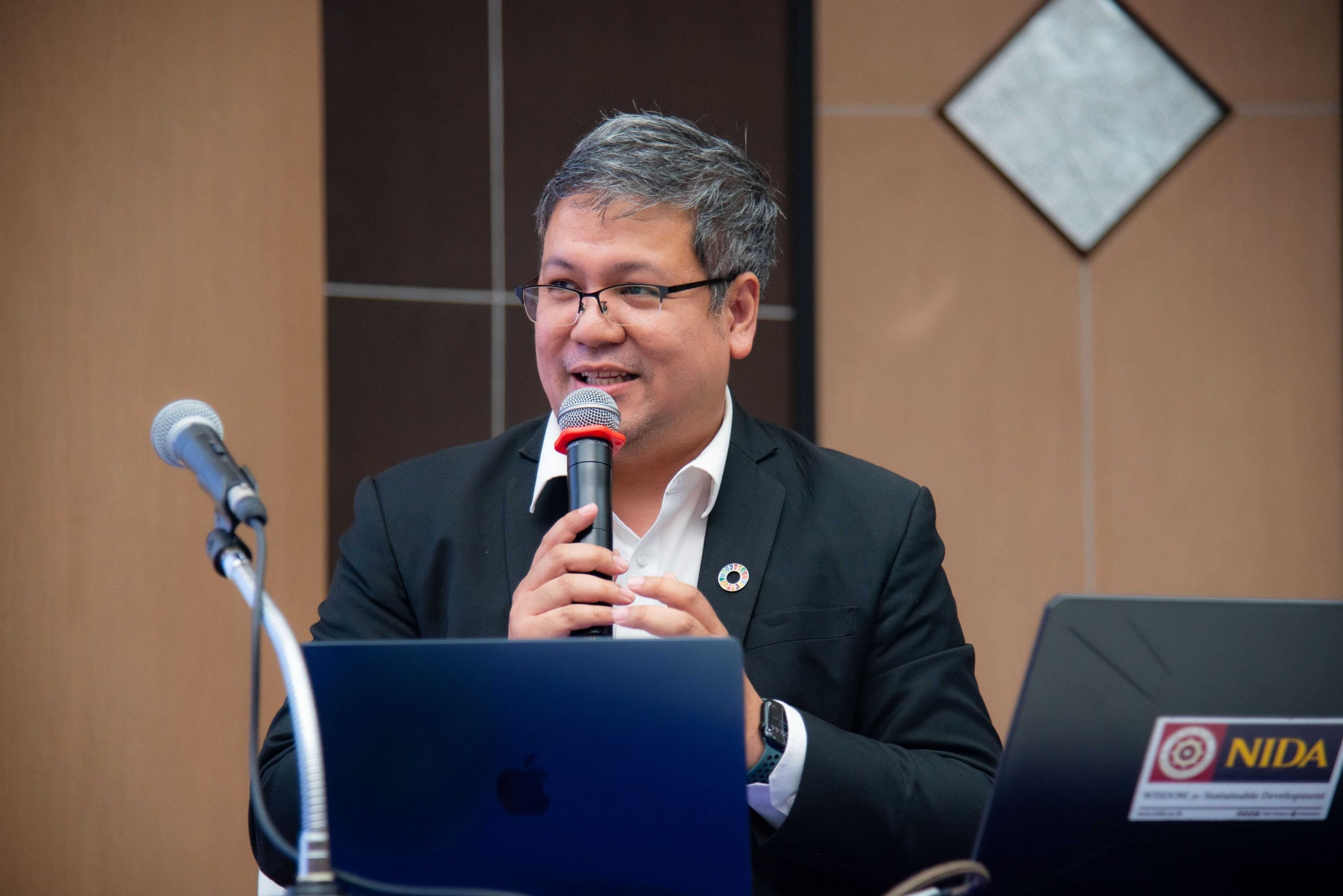 โดย ได้รับเกียรติจาก ศาสตราจารย์ ดร.ทิพวรรณ หล่อสุวรรณรัตน์ อธิการบดีสถาบันบัณฑิตพัฒนบริหารศาสตร์ กล่าวเปิดงานและกล่าวต้อนรับ วิทยากรบรรยายพิเศษ คณะกรรมการผู้ทรงคุณวุฒิ ผู้บริหาร คณะกรรมการพัฒนาระบบบริหารความรู้ภายในองค์การ คณะทำงานการจัดการความรู้ภายในองค์การระดับหน่วยงาน และผู้ปฏิบัติงานในสถาบัน ในช่วงแรก ได้รับเกียรติจาก ผู้ช่วยศาสตราจารย์ ชล บุนนาค ผู้อำนวยการศูนย์วิจัยและสนับสนุนเป้าหมายการพัฒนาที่ยั่งยืน (SDG Move) ในการบรรยายพิเศษภายใต้หัวข้อ THE Impact Ranking กับมหาวิทยาลัย : ข้อคิดเห็นต่อสถาบันบัณฑิตพัฒนบริหารศาสตร์ (นิด้า) โดยได้กล่าวถึงภาพรวมของ THE Impact Ranking พร้อมแสดงข้อคิดเห็นเกี่ยวกับปัจจัยที่ส่งผลต่อการจัดอันดับในบริบทของมหาลัย การสร้างความยั่งยืน รวมทั้งให้คำแนะนำถึงแผนการพัฒนาที่ยั่งยืนของสถาบันในอนาคต เพื่อให้สถาบันสามารถพัฒนาอย่างยั่งยืนต่อไปได้